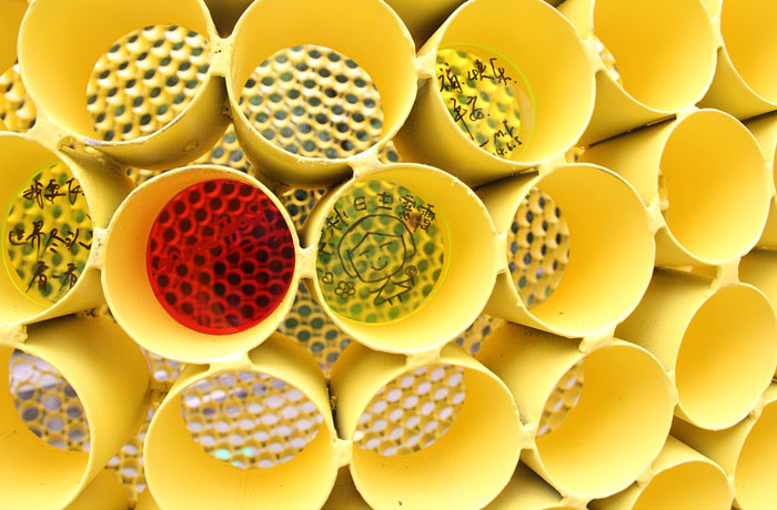 整个作品适合拍照留影,它能记录人们的快乐,是一段美好回忆的物质载体。同时也符合现今读图时代的传播方式。一传十,十传百,它的存在通过图像信息不断的外向传播,传播出去的不单单是作品本身,还有作品承载的美好愿望和参与者的欢快记录。